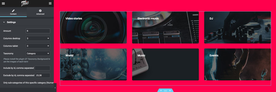 Easily control which terms (categories or other taxonomy) to include or exclude. You can use this for posts, events, charts and more!