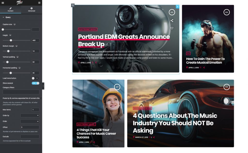 Tons of content and design options to customize appearance and query: easily build a stunning magazine page or your radio station website.