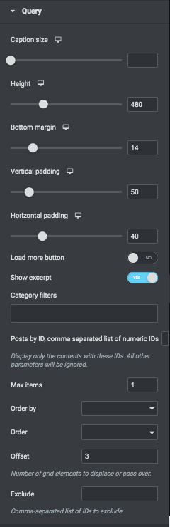 You can also set a query offset to hide some results (for example, if you had some posts already before, and want to skip them) or manually add a list of items to exclude. The hero post has a built-in like and share functionality as well.