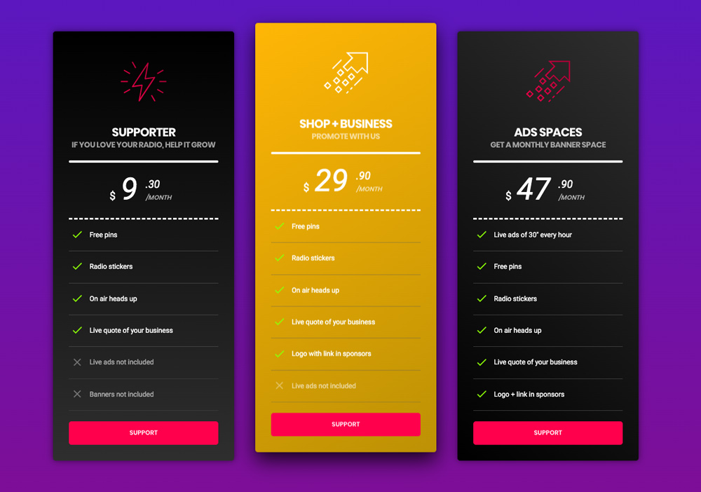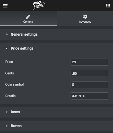 Built any pricing plan and customize contents and styles