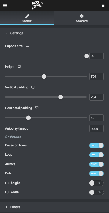 The “upcoming shows slider” is an automatic widget for Elementor included with the Pro Radio WordPress Theme that extracts automatically, from your current schedule settings, the actual and upcoming shows (you can set the desired amount). Its content is automatically updated every 2 minutes.
