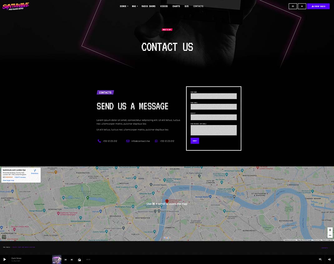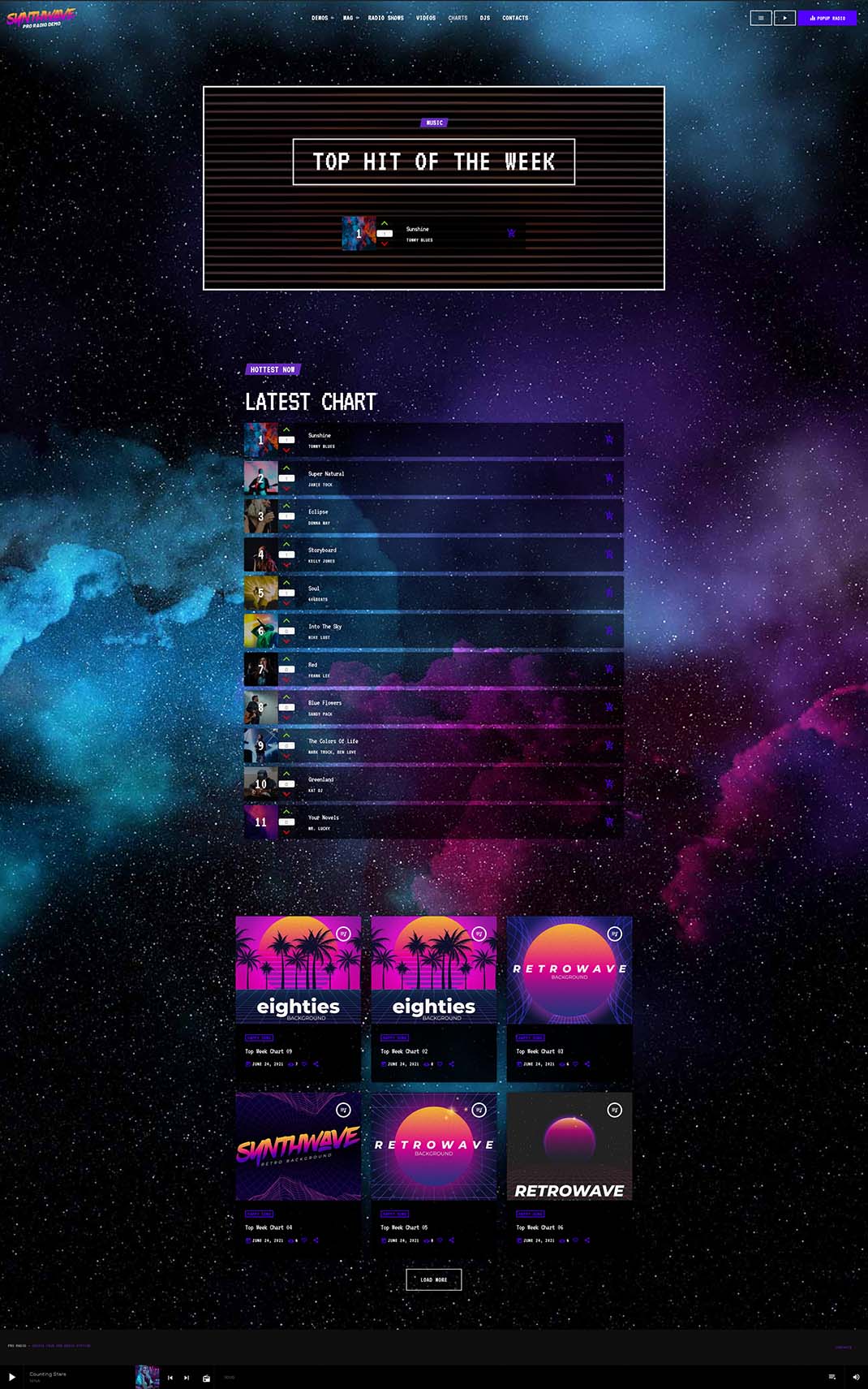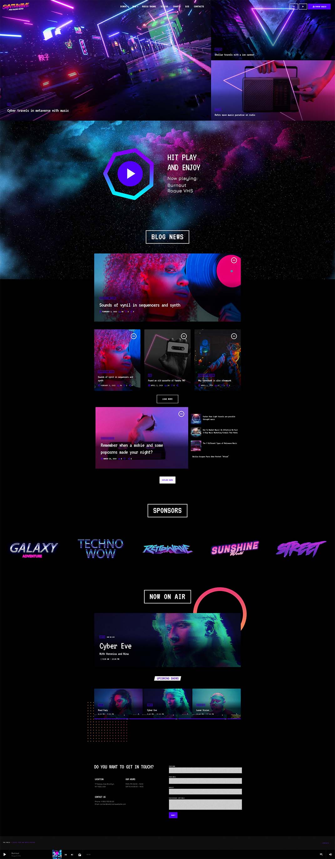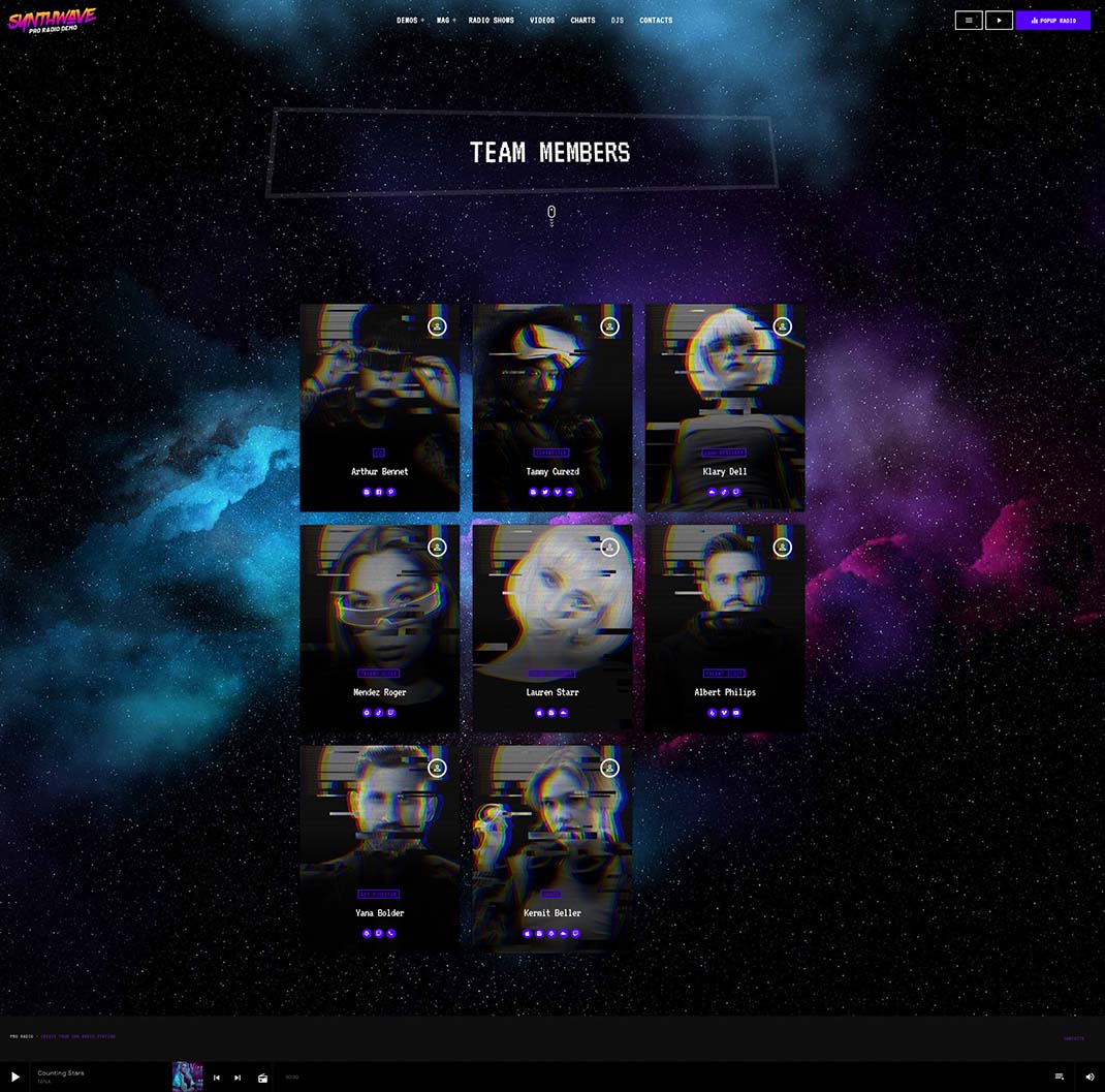 This amazing synthwave and retrovave demo has 10+ home page templates included for Elementor, and unique styling pages. Perfect for your retrowave and synthwave radio station, plus includes the PSD tempaltes in our Radio Pack download area, to make your own featured images in the same style as the demo pictures, completely for free!