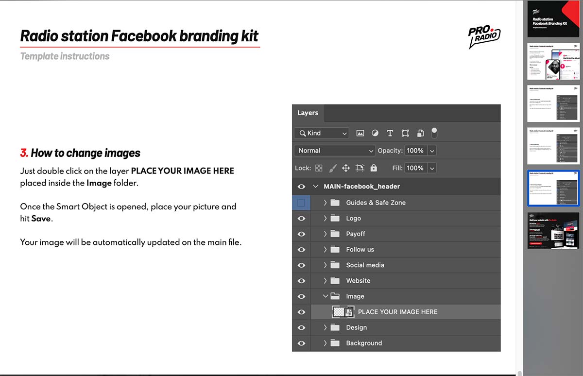 To edit the Photoshop templates you can simply double click the layers of logo, image and text and replace with your own.