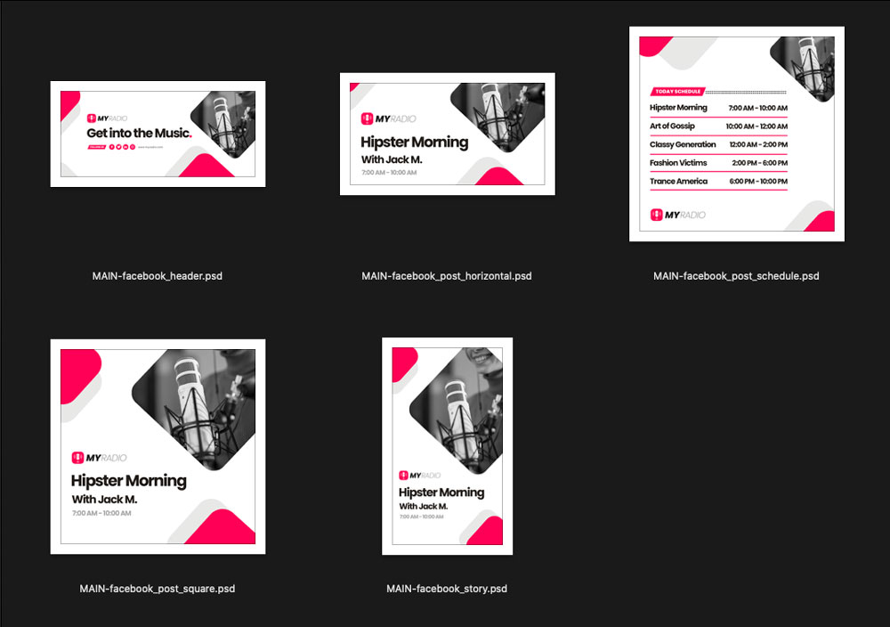 This set of resources is meant to be used by any radio station that wants to promote its presence on Facebook using a series of stylish images, display information about special shows and attract new fans and followers. Our objective is to help any small radio owner to achieve a professional look on Facebook without any extra cost.