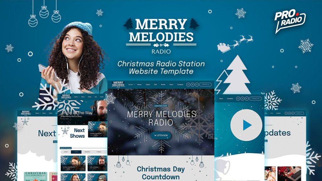 Merry Melodies: a double Christmas Radio Station Website template included with Pro Radio WordPress Theme