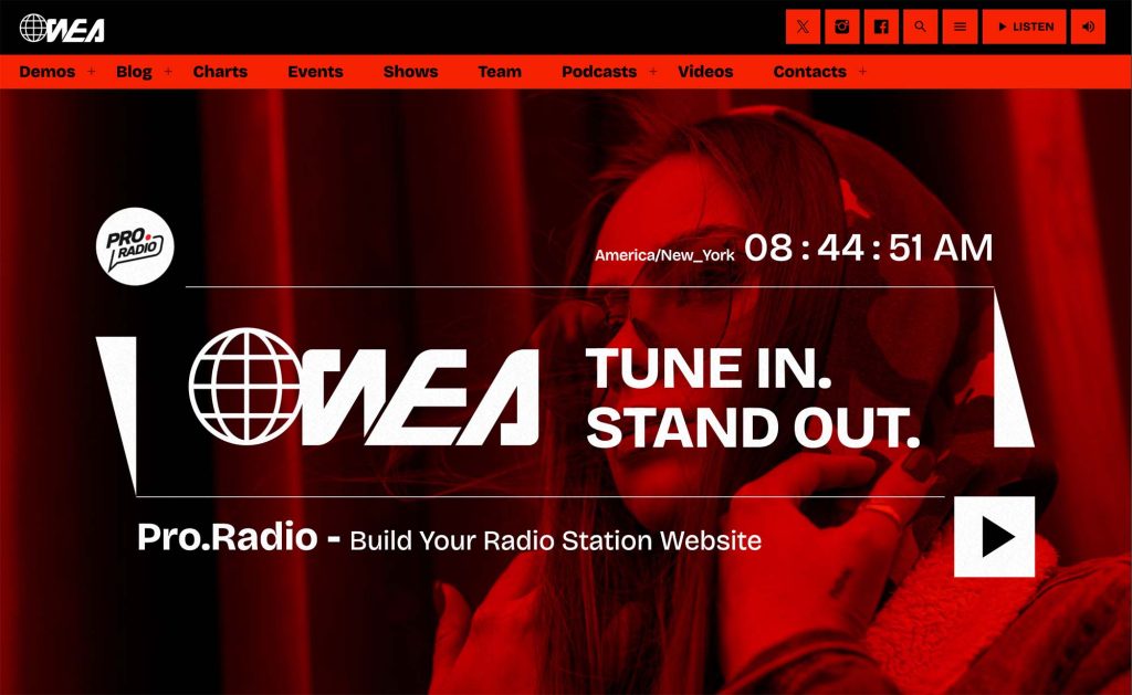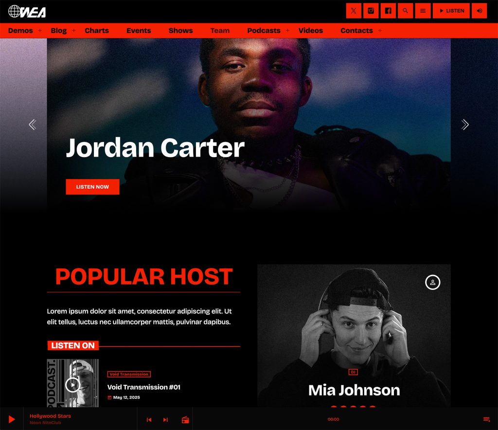 Behind the unique aesthetic of WEA is Pro Radio, the most advanced and feature-rich WordPress theme built for radio, DJs, and audio streaming. Whether you’re running a digital radio, hosting DJ shows, or managing a label, Pro Radio provides all the tools you need to thrive.