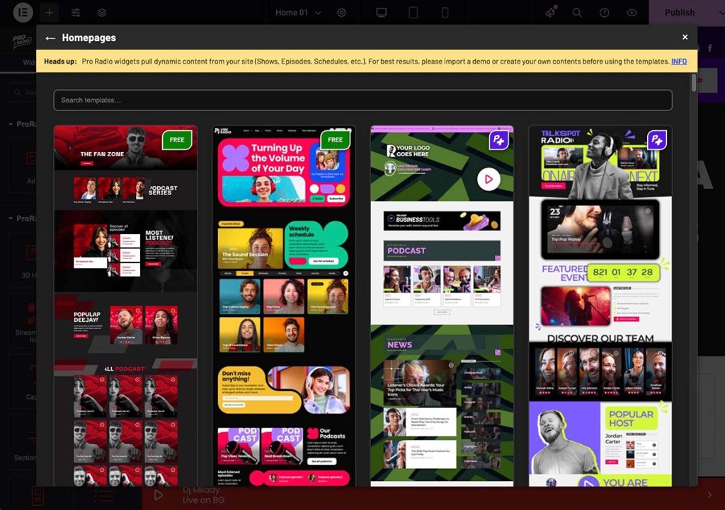If you’re running a radio station, podcast, or internet radio, your website should be just as engaging as your sound. With the new exclusive radio website templates included in Pro Radio Plus, you can instantly upgrade your online presence. These pre-built templates are ready to install on top of any existing Pro Radio website, giving you a fresh look without starting from scratch.