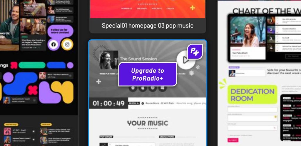 Ready to refresh your radio website? These exclusive templates are waiting for you inside Pro Radio Plus. Whether you want a vibrant, interactive, or professional design, you’ll find the perfect homepage to fit your style.