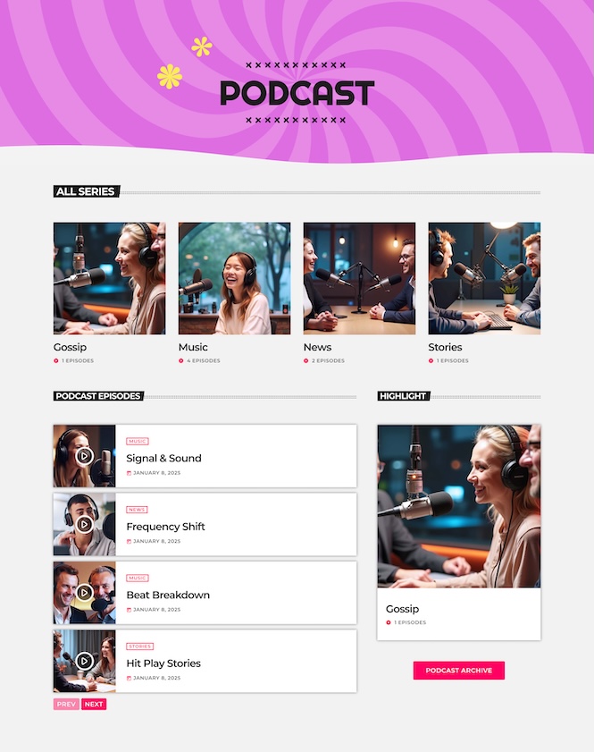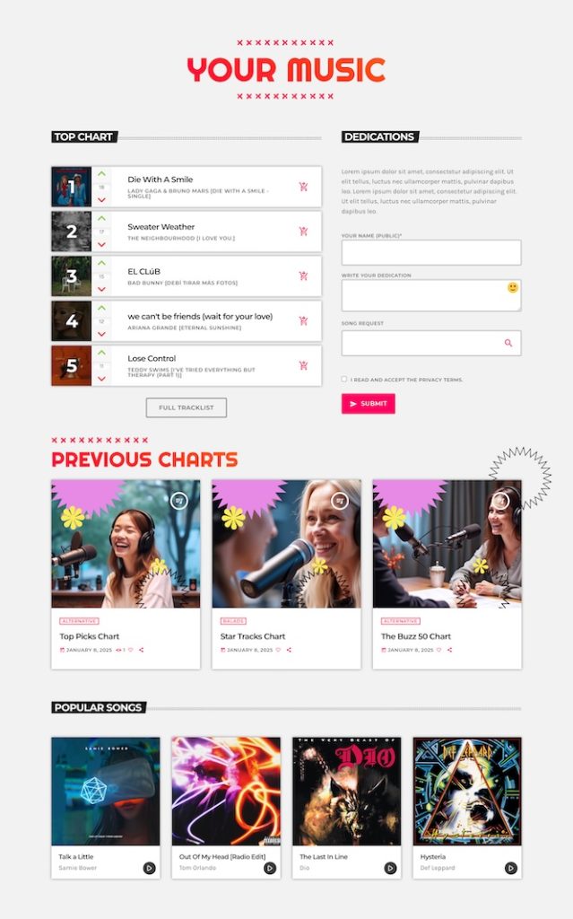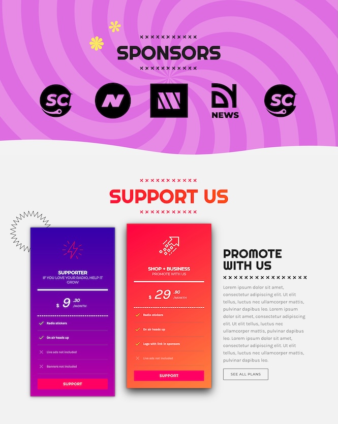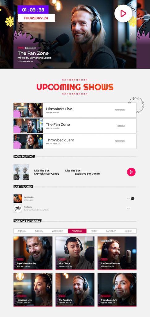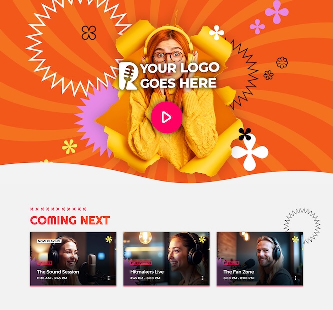 Designed for stations that want to highlight schedules, sponsors, and partnerships.