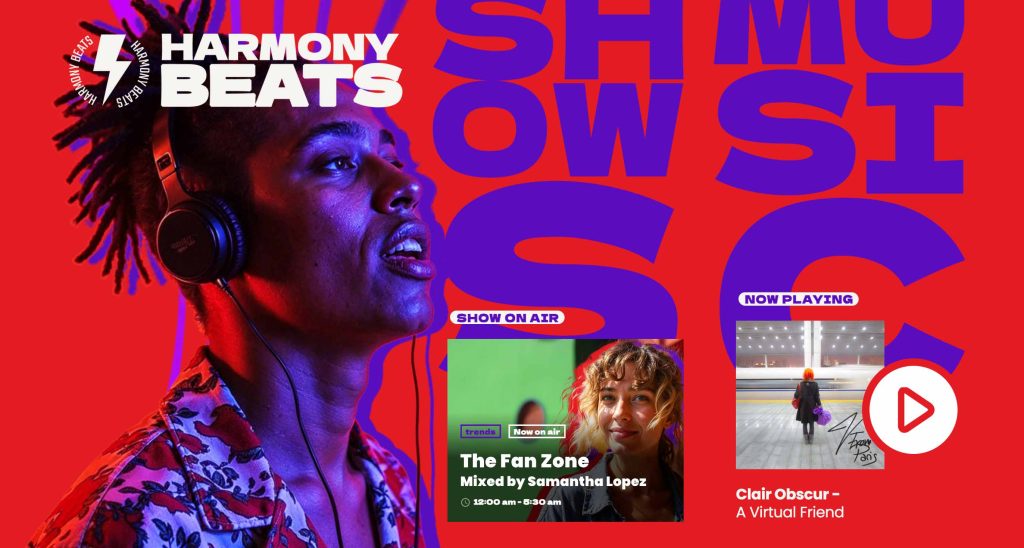 Harmony Beats: Smooth, family-friendly design perfect for easy listening formats, community radio, or spiritual stations. View Demo