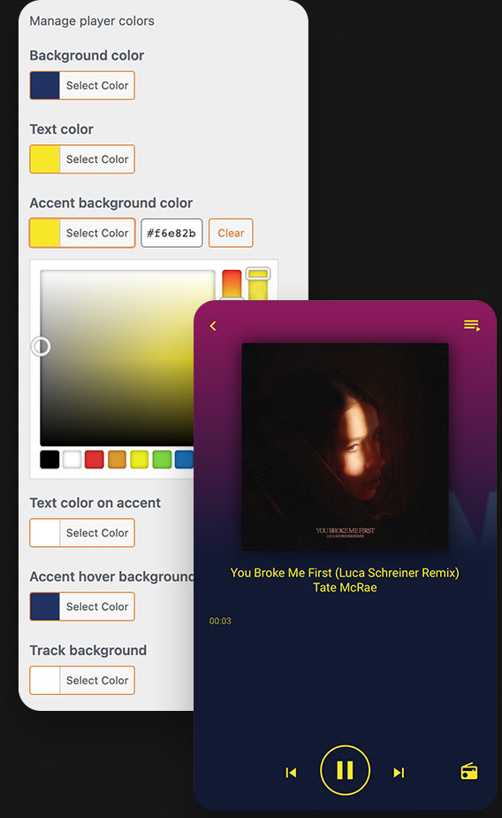 With its huge amount of different settings pro.radio player is the swiss-knife of your radio website. Your imagination is the only limit.