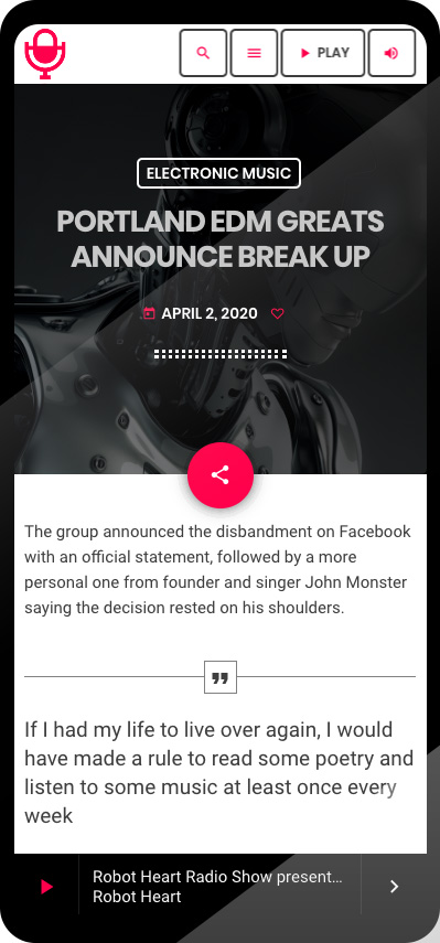 The music player of Pro.Radio is super responsive and has an app-style functionality and layout for any handheld device, to ensure the maximum usability and ease of use.