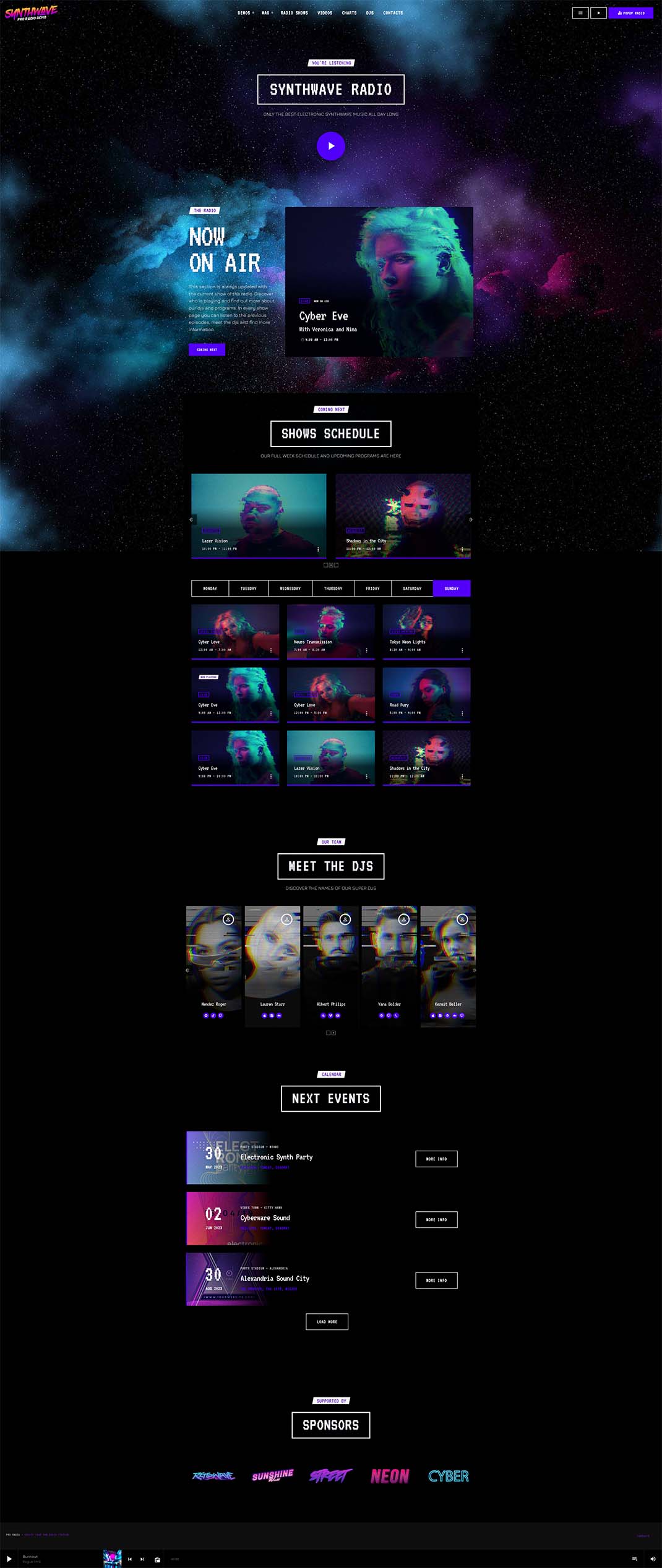 The demo comes as well with downloadable PSD tempaltes to create your own featured images in the same style, available to every Pro Radio user from the download area of our website. Easily recreate the same effects of our demo website with your own speakers and djs simply by replacing the pictures in the provided PSD files, and obtaining the exact same look as our demo website, without complex design adjustments.