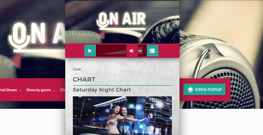 Add a popup player to your website in few clicks and completely customize your popup player window with contents and widgets, or link to your own html page.