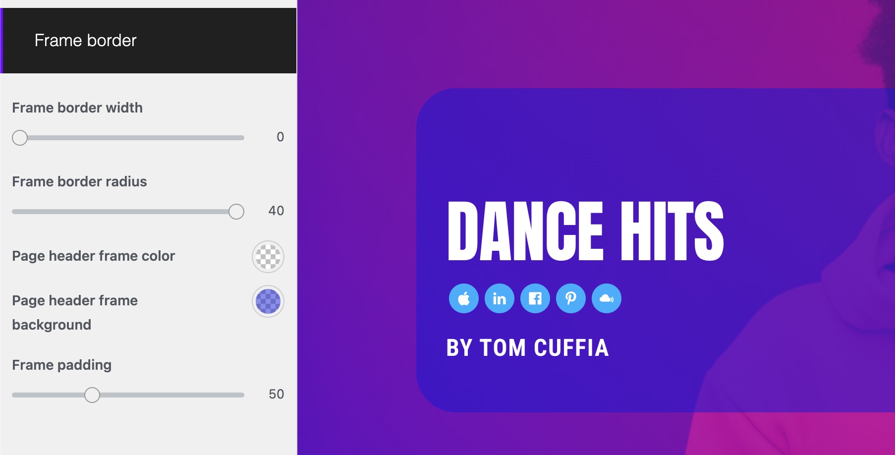 Customizer: Page header – Added frame border radius