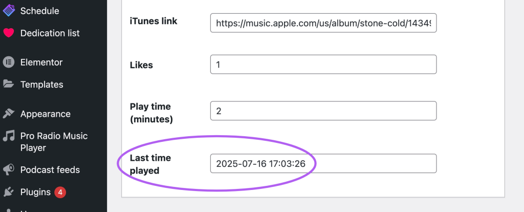 Last Played Timestamps: Track the last-played time for any song, easily extractable via Elementor for dynamic tracklists.
