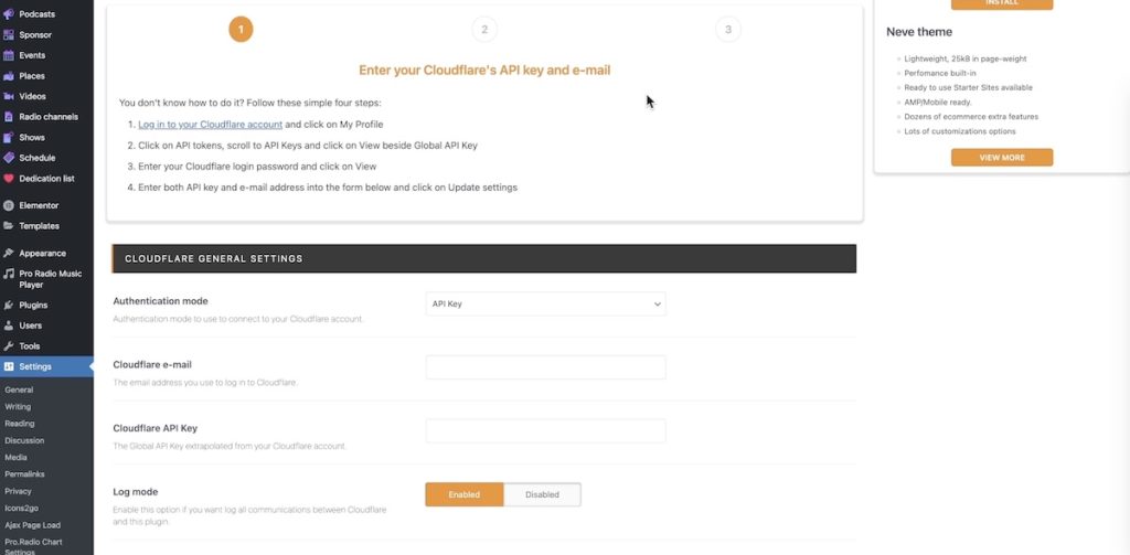 Once Cloudflare is set up, we need to configure caching parameters. Install the “Super Page Cache for Cloudflare” plugin and link it to your Cloudflare account using the API key.