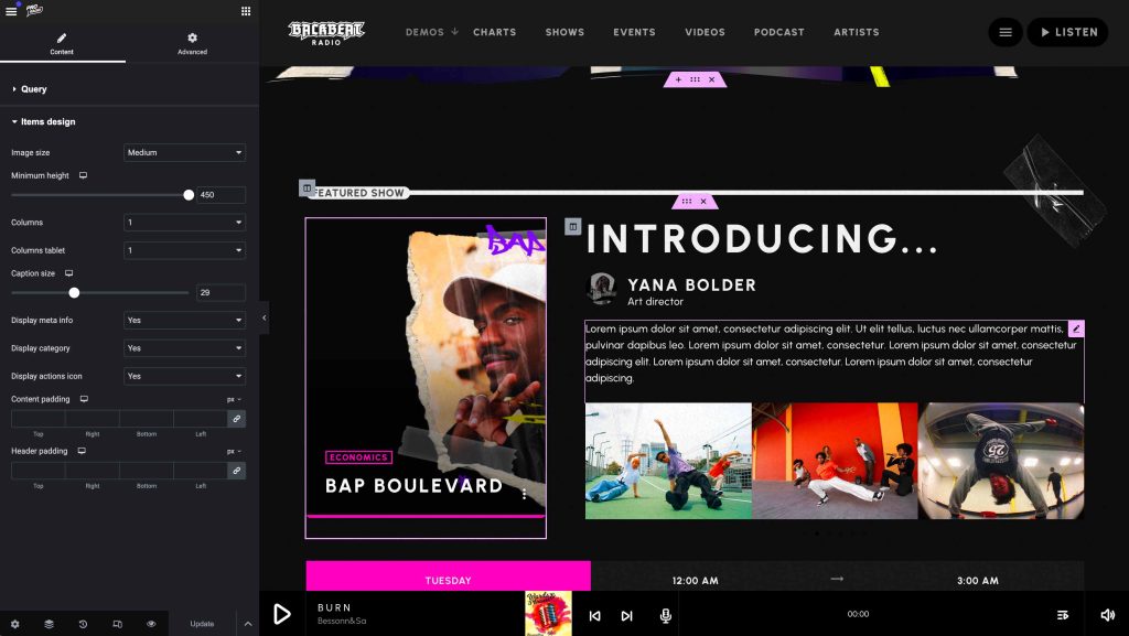 Think of your concept as your station’s DNA. It embodies what you want to offer, who you want to reach, and why listeners will choose you over the competition. Here’s how Pro Radio WordPress Theme empowers you to shape that DNA: