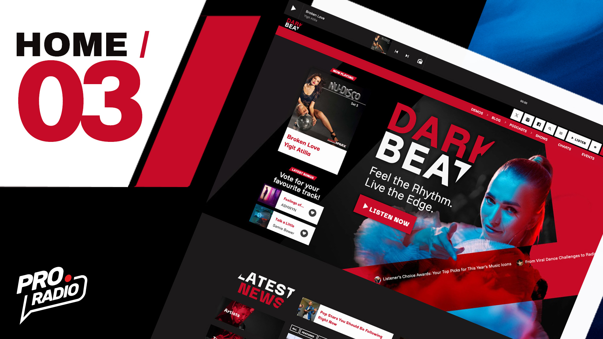Make your station or show an undeniable force with Dark Beat Radio—a sleek, powerful website template designed to elevate your brand and leave a lasting impression. Now available with the Pro Radio WordPress Theme!