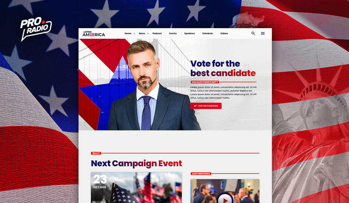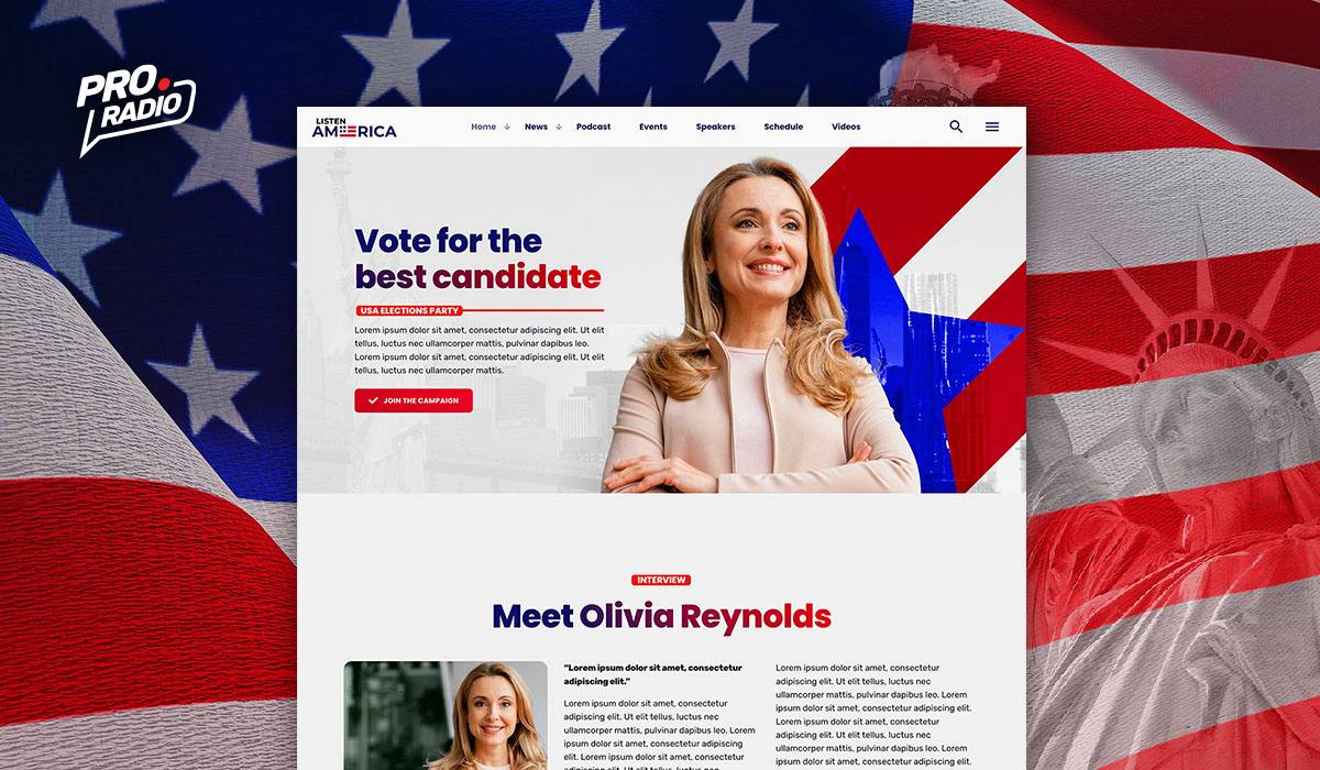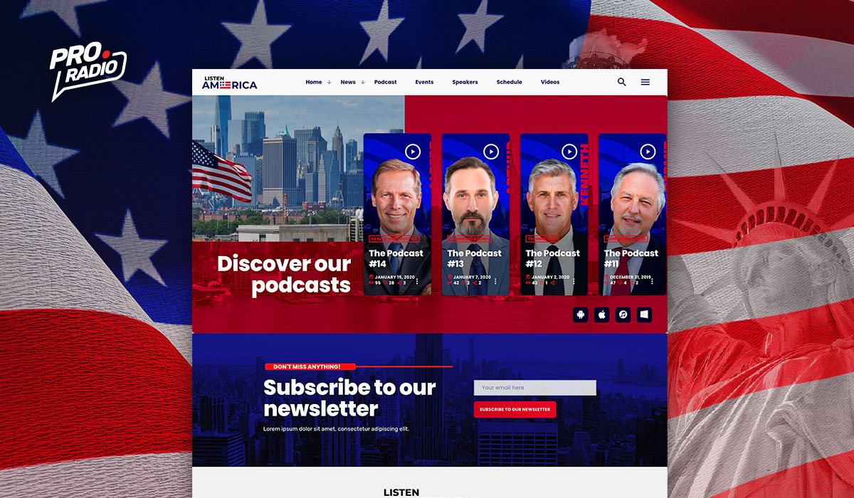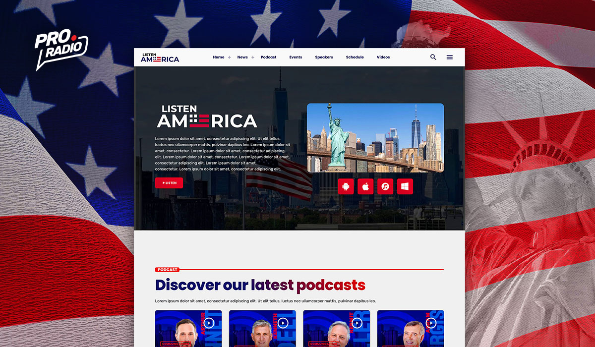 Keep your listeners informed about what’s going on in their country with Listen America: the new Pro Radio WordPress Theme political radio station template. Its polished and professional style, inspired by the nation’s flag, will make your radio station stand out from the rest!